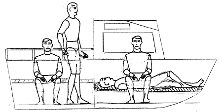 Fuel may be in six-gallon plastic cans you can take ashore to refill, or permanent metal tank(s) under cockpit seats. (See USCG regulations on tank installation. This is in the CG publication "Safety Tips for Back Yard Boat Builders," which you should have and study. You get this 50-page publication on the web in a printable form HERE.