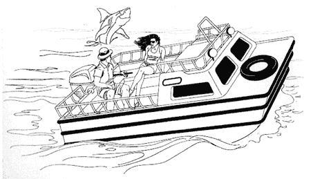 A BUSINESS OPPORTUNITY? This is a plus because I have been self-employed most of my life and "how does this make money'?" — is always on my mind. Sea Rover is flexible enough to allow many uses. Fishing, light salvage, SCUBA, just good old gunk-holing, and my favorite - photography, which I learned during my early days with the Associated Press. People love photos of their boats (more than of the kids?) And you can catch them in action. Especially the racing boats. This is why I show the "hitchin' post"· on the cabin top. You stand up there and lean against this while shooting pix. (Note also that you can steer the boat from up there with a tiller extension) And now I must explain the Land Rover spare wheel on the "hood". This is an auto tire innertube and you use it to stay afloat when you are in the water taking low angle pix of boats.) Or you can just play with it in the surf.