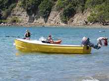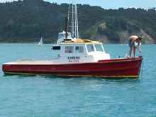 "Karewa' is a workboat from a local boatbuilders yard, heavily built and well powered with a good sized diesel she is a maid of all work, towboat, salvage, weekend fisherman and of course transport to the Mahurangi Regatta. |