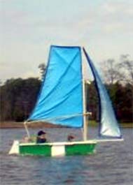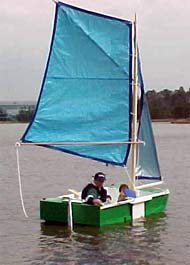 My boat was built in a mixture of Bolger/Payson Brick style with external chines and taped seams and my own special brand cut and curse construction. I also don’t have any other sails to use so I made a 4-sided spritsail out of polytarp. As an afterthought - more like “I have tarp left over” - I added a 15 sf jib. My leeboard is a kick up model based on Jim Michalak’s design. Worked great when I got blown into shallow water along the lee shore. |