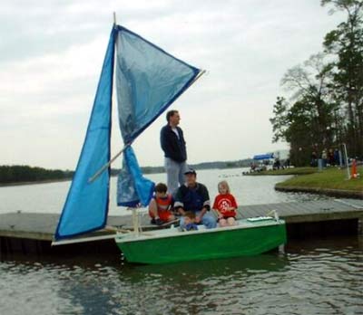 The race consisted of three boats – “The Ugly Duckling” built by Ken Abrahams, “Bucket Ears” built by David “Shorty” Routh, and my boat, “DUB”. All through the building process, I thought, “this has got to be the ugliest thing that has ever hit the water”, hence, DUB – Doug’s Ugly Boat. But after all was said and done, it came out quite presentable. It’s amazing what a couple of coats of paint will do. The boats also showcased the different styles that could be used.