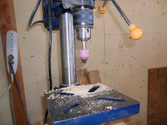 Marking them up I drilled five ¼ holes a ½ inch a part. I then tapered the holes using a grinding stone in the drill press,