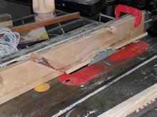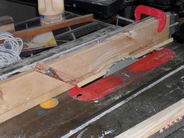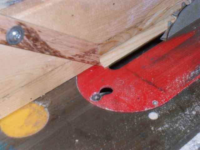 I then chamfered the mating sides on the table saw using a gadget I made up to prevent kick back.