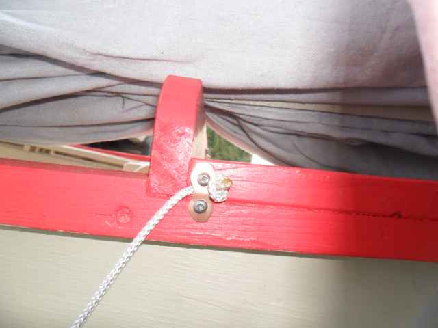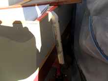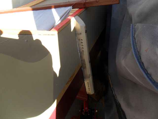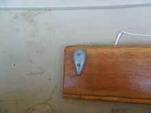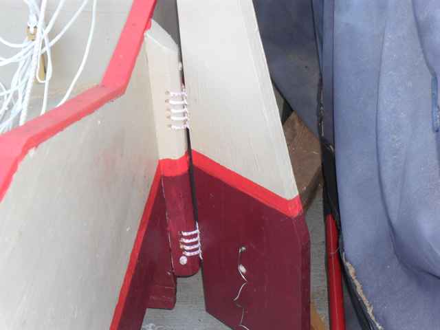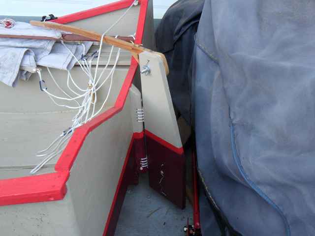 Tom said that he was replacing the rudder hardware with something he had found on the Wharram web site, a lashing. I should have asked where on the site because I couldn't find it.