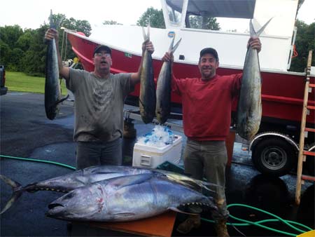 We took the skiff offshore of Ocean city Md this weekend.   Ran it to Poormans and Washington Canyon about 60 nm off the beach.  Total run was 227 miles in 30 hrs trolling two days.  Ended up with two Yellowfin tuna to 50 lbs and 9 mahi mahi to about 10 lbs.   Nice trip.  Averaged 3.5 nmpg.