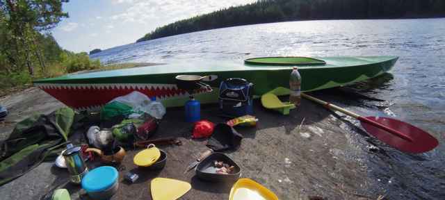 Before this summer I had not done any "longer" paddling trips on lake. I had feeling that it's a bit boring - I can see a long way ahead - and I have to paddle there and even further away on a monotonous rhythm. Last spring I designed and built a bit longer and narrower kayak to see if I could lake paddling be fun?