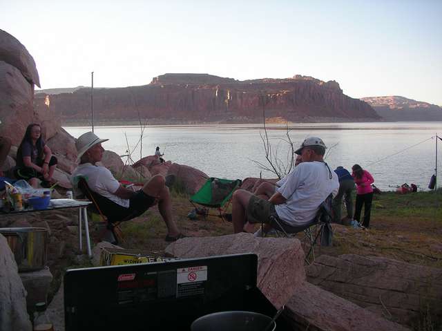 Folks relaxing before it's time to start fixing supper and get tents setup. |