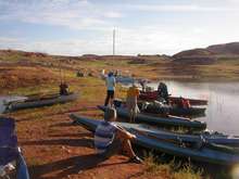 Here is a shot of several of the boats beached at our first night's campsite, one of the easier places we had to beach the boats. |