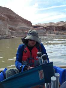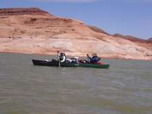 This is proof that I really did get in a canoe and paddle on Lake Powell, a shot of me and Cathy paddling. I really was there. |