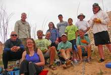 Day 3. Distances are deceiving in the western desert. Hal and I sometimes traveled separately from the rest of the group, and agreed to be a team and stay in contact with each other for safety reasons. What sounds simple turned out to be difficult, as we repeatedly lost track of each other, because our boats faded out of view in the vast lake and landscape. The whole party made steady progress and, with considerable effort, reached our third camp on Good Hope Bay.