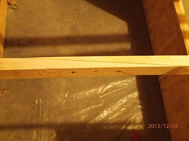 This picture shows 2 rails connected with a scarf joint. Left section "ramp" is on the bottom of the diagonal glue line; the right section ramp is on top. |