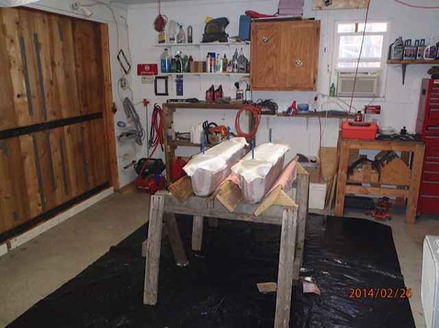 Note I have built cradles to secure the pontoons/outriggers and cut the cloth ready for glassing...
