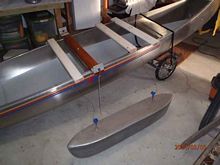 The mast thwart will be right at the factory thwart (which will be removed). The mast thwart will be permanently installed. The leeboards will be clamp-on for any possible adjustments. The pontoon struts will be removable for transporting, as will the pontoons (they will be unbolted from the struts for transporting).
