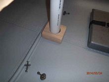 Using a wood mast step and a 1 1/2" PVC pipe for aligning, you can see the thwart placement. There is another option for the mast step, removing six keel rivets and having a step fabricated to bolt in place. The advantage of using a bolt in step is it can be removed and/or relocated by removing rivets and thru-bolting to the keel. The obvious disadvantage of marietexing the step in place, it's extremely difficult to remove. I'm undecided which I want to use. The mast thwart is 1x4 oak, although I have a section of 2x6 spruce which would match the leeboard thwart. The 1x4 oak middle board represents the location of the pontoon strut.