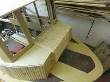 The windshield frames finally got fitted and glued into place. And, I even re-shaped the visor and cabin top generally. The side windows are set to finish and even to glaze. Time to start thinking about propulsion. Probably something with a twin small outboard set up with independent tiller-steered rudder in the middle. Some of the motor-candidates are waiting for the call.