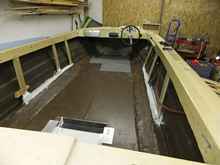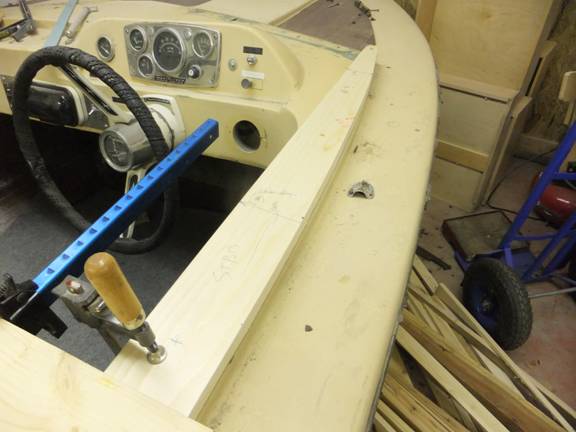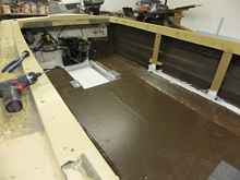 This little invention is what it took to bring the side decks back up to more or less level while stiffening and propping them up. They will have to hold a heavy cabin top.
