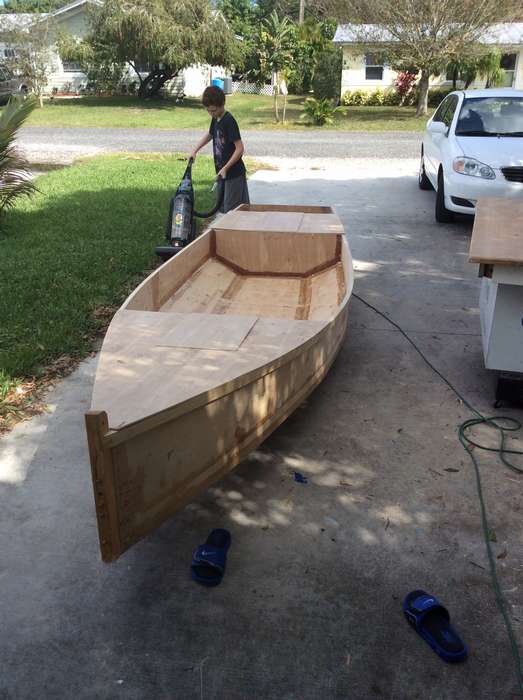 I got my boys involved laying out the patterns on the plywood and with the cutting of the wood. I was surprised how much we could cut with the circular saw. A bandsaw would be great for the next boat.