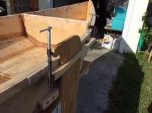 The Build I purchased a fairly decent used table saw for $85 and a Ryobi drill press (always wanted a drill press) and found the lumber I needed at Home Depot. Following Jim's advice from the book, he noted that the clearest lumber yard wood was usually found in 2x10's. I would concur! I ripped everything I needed for chines, stem, masts and spars from this lumber. We used four sheets of 1/4 inch Luan underlayment plywood. I knew I'd have to slather the heck out of it with epoxy to protect from delamination. We shall see! I am fairly certain that one spends more than the cost difference on epoxy for cheap plywood than if they'd bought high dollar marine plywood.