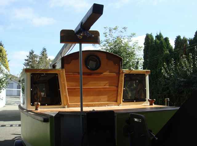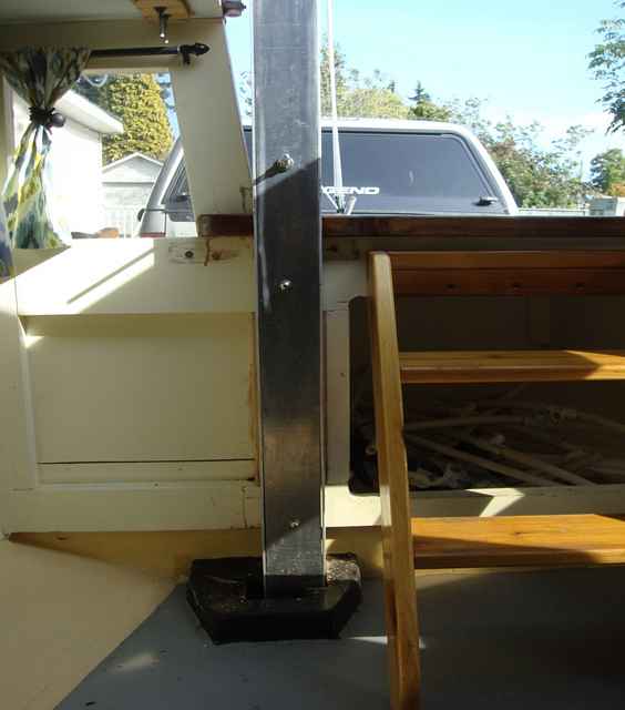 Now that the mast could fold down a crutch was required at the aft end of the boat to support it.