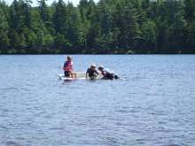 One of the kids who swam decided he was too tired to swim back to the big island.