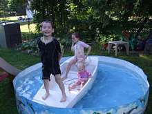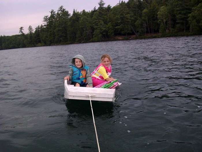 Later that summer Seagull got one more chance to float, for some reason Abby and Nicolas decided to launch her into the smallest lake ever.