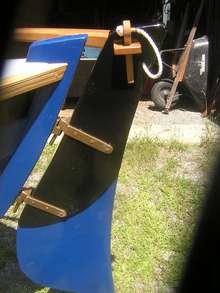 The kit arrives as a stack of CNC cut marine ply including planks (with scarfed edges) molds, ribs, and inner stems. The molds set up in a clever system of interlocking struts and, with the keelson, ribs, and stems in place, planking begins. A word to the wise; changes have been made to the kit since the plans were drawn and if you like to prefab pieces based on the plans, you will find surprises. There have also been some instances where planks did not fit well to a particular hull. I have seen three boats that appear to me to be slightly unfair at station 2, planks 1-3. Like all things in boat building, you have to build to your boat.