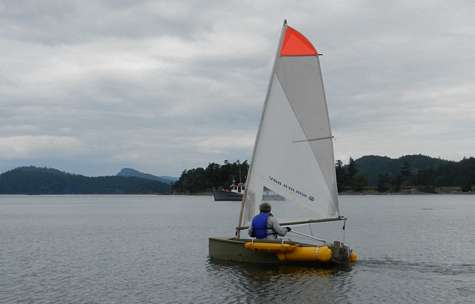 Here are todays first sailing photos. I am sailing with the full "training wheel" set up. I'm going to remove them tomorrow - too boring, although very stable and safe. Almost made 5 knots though (4.8).