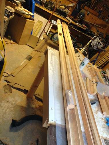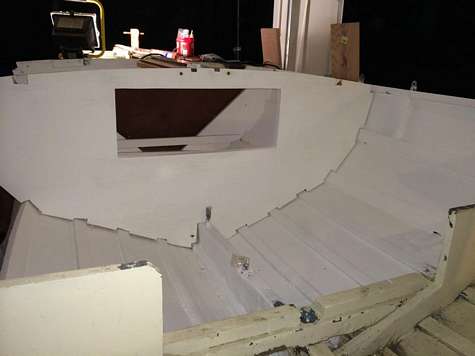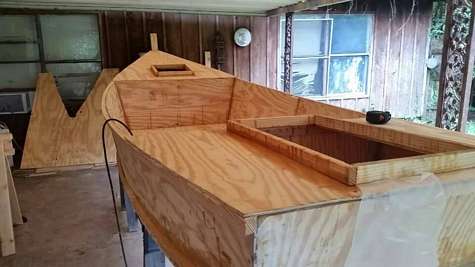 This is my restoration of a 1940 Wee Scott sail boat. I replaced the forward bulkhead. I decided to fiberglass the mast support and replace the side boards. The area where the mast goes through the top deck has been beefed up. The last step here is to epoxy the bulkhead to the frames. More pics here on Facebook.