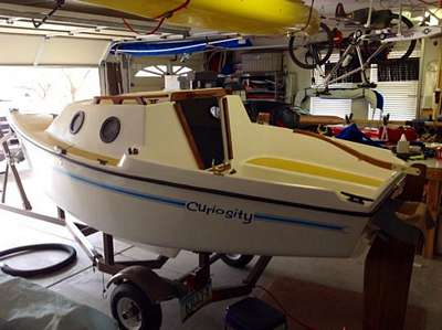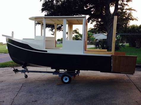 The trailer it's currently on is more of a building cart than a trailer. I keep it at in a carport on the street near where I live and need to be able to lock the gate. The boat leaves two inches extra after the gate is closed and less than two inches between its roof and the top of the boat. I design all my boats to be able to be built in that carport so none are longer than 18 feet (the length of this one). Obviously, it will have to be moved to a larger trailer to transport on the highway;-)