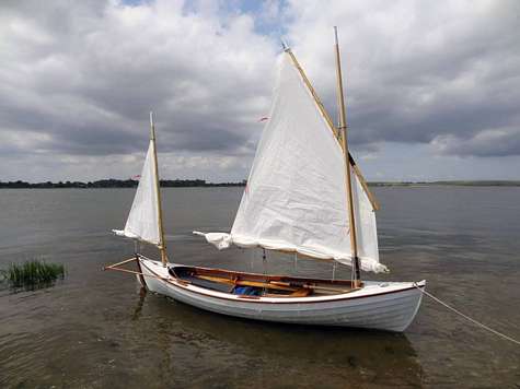 1/10-ish scale Bolger Zephyr coming along nicely. Perhaps I should have ditched the midships frame and put in two equally space instead. It looks a little hard right there on the starboard side.