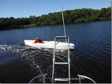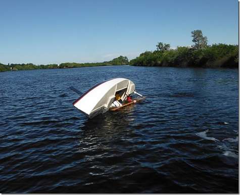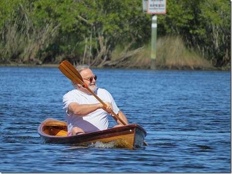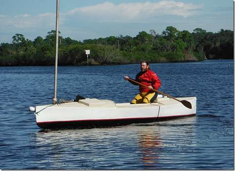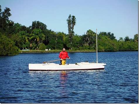 Museum John was dying to see how the Everglades Challenge boat floats so I installed both centerboards and we pushed it in this morning. His custom design exceed our expectations by a mile. It's stable and smooth and seems to offer no resistance to the water at all. Now he expects me to finish it.