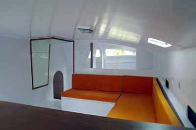 The pictures give a good impression of how big an catamaran with a length of only 25 feet (7.50 m) is. As a designer I am very pleased with the result.