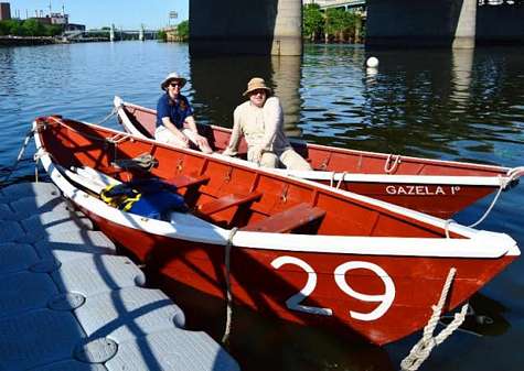 Dory 29 was finished and launched in time for the Walnut to Walnut race sponsored by the Independence Seaport Museum of Philadelphia, PA on May 31, 2014. The 15 mile race started at Walnut Street on the Schuykill River and ended at Walnut Street on the Delaware River. Rowing crews from tall ship Gazela Primeiro finished the race in good time and enjoyed it so much that they have suggested an evening row one day a week. Dory 29 joins Dory 37, also built by me, on Gazela's deck as part of the living museum of this 113 year old Portuguese fishing vessel.
