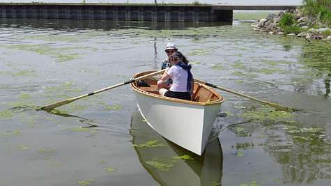 Bill Loux's Goat Island Skiff was wet for the first time.