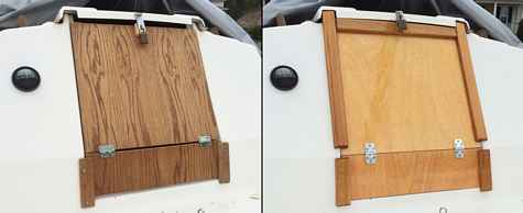 Fortunately, I had recently built a new hatch to replace the rather shoddy one constructed by my boat’s previous owner.   Hence I had the plywood scraps from the old hatch sitting unused in the corner of the garage.