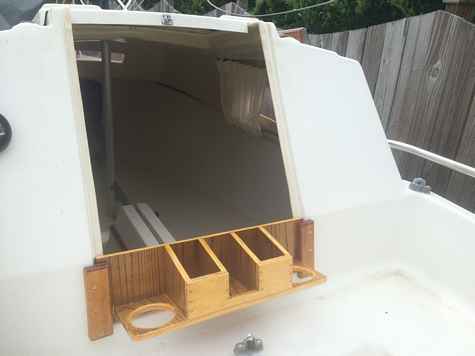 Best of all, its easily removable when not needed or desired. Total cost:  A few stray hours and left-over materials that were just collecting dust.  Looking back, I realize that just about every boat that I have ever owned could have benefited from a similarly convenient collection of cubby holes.
