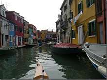We had a base camp on a camping ground near one of the boccas, the mouths into the Med. The whole lagoon spreads about 45 km and has abundant tiny and bigger islands. Some of them are partly flooded during high tide, some of them are just high enough to be inhabited. Each one was used for different purposes: a cemetery island, some monastery islands, the fishing island Burano (I really do not know where they get these colors for painting their houses from), the glass manufacturers at Murano, two agricultural islands, and Venice itself. All of them are interstratified by small channels. Most of transport is done by boat. You can cruise for a week and always find new interesting spots. We also hassled the gondoliers in the rotten canals of Venice.