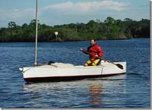 I've added this picture of Museum John out for the first time in the boat we're calling the "Everglades Challenge Boat" to compare to the Bufflehead canoe that Axel's in. Notice the striking resemblance. If you took Hugh Horton's design and added four feet to the middle, six inches to the beam and four inches to the sides you'd get what John considers to be the perfect expedition boat. These are the diminutions of a very successful racing canoe from over a hundred years ago.