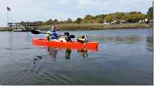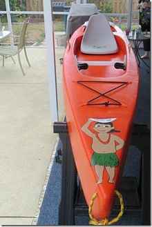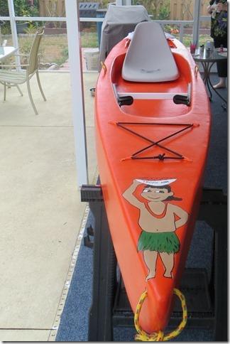 I should tell you that Lance works at Tropicana so he painted his foam kayak orange and Nicole painted Tropic Anna for him. This one is the last and the best of all of the foam boats made so far. And yes, this is latex paint; I've been telling you guys that this is not your dad's house paint anymore. It does not melt in water and is glossy.