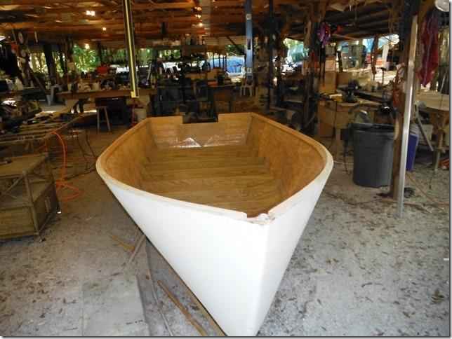 Steve finished the rebuild of Chelsea, this time painting over all of the bright work. Real wood looks great, as seen on this canoe of his until the sun eats it up. He did refinish the mahogany on Chelsea two times but that's the end, it's now wood colored latex paint which lasts forever in the sun.