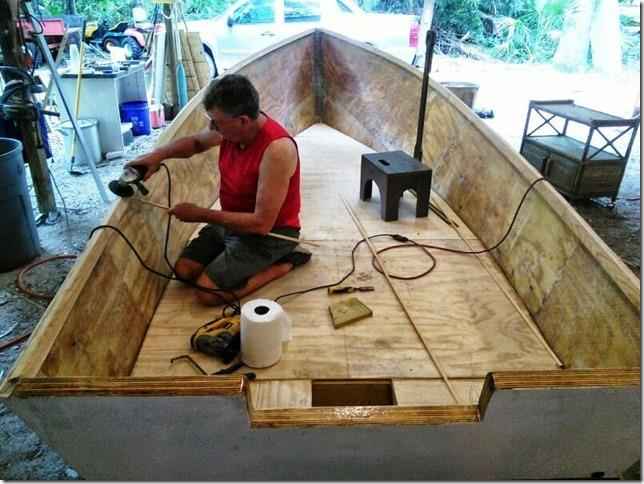 My new boat is coming along. Steve got me glassing in the floor or deck or whatever they call the things you walk on in boats.