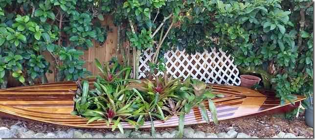This beautiful kayak is a good example of why we're switching to foam boats. Wooden boats go to hell unless you store them away and never use them. This is one Kayak Kathy made years ago and finally got tired of fooling with so she turned it into a planter. The next picture is of Steve and an old guy out in Helen Marie. I'm calling him an old guy in reference to the old guy in the next picture who is our buddy Red Sears who turned 90 last month. He was out back in one of the sheds messing around with some kind of boat thing when I got him and told him that there was an "old guy" in the tiki hut who was old even by his standard. I can't remember his name but he's 97 years old and still getting around. I busted out laughing when Red responded with "hell, lets go see this old guy". The two hit it right off and had a grand time talking about horse and buggies and out house days.