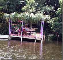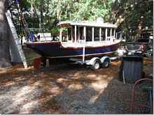 I'm sticking this one in to encourage Howard to build one of these old timey inboards. This is a Glen-L design and he's been talking about doing one for years. I'm pushing for him to get two old jet skis and use their water jet drive systems to have a twin jet drive boat. Our dock continues to evolve and attract more and more boaters who come along the river. This dock and our boats tied up there are like a magnetics to true boaters who happen by. And us waving them in with cold drinks is hard to pass up.