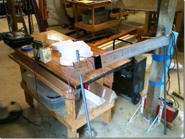 There were boats of all kind all over but there were also airplanes under construction. A lot of the parts are fiberglass that he'd made using foam that he glassed and them melted the foam out using acetone. He showed us how make perfect shapes using a hot wire and patterns. I even played with some foam.