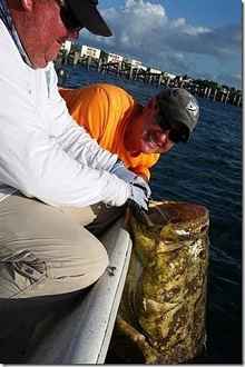 Fishing anyone? Kayak Kathy and family went out with a charter Capt. at Boca Grand. That's a pass from the Gulf into Pine Island Sound about fifty miles south of me. They started out with these little Goliath groper caught using sting rays for bait.