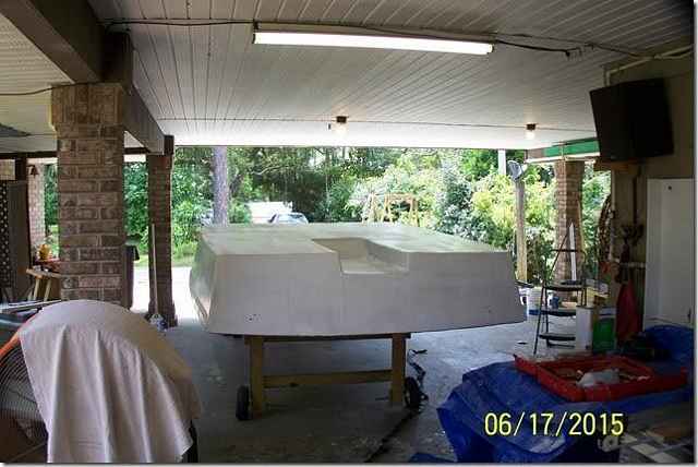 It's not unusual for you guys to stop by to check these boats out and talk about foam building, so when Richard from Apollo Beach came down to see about making foam Melonseeds I didn't think anything of it. Well he didn't need to talk about building with foam, he wanted to see the shape of the hulls to get an idea of how many sections he'd need to make. He's going to make 10 of our boats for a sea scout group of some sort and thinks he can make the hulls from foam in about a day, no kidding. Richard has been making stuff with foam for forty years and is probably the master of the skill. Howard and I were overwhelmed with all his knowledge, which like all experts we had to drag out of him. He told us about making airplanes out of foam so we were hooked and drove up to his shop/hanger today. I didn't get a picture of them but he had a glider with 15 meter