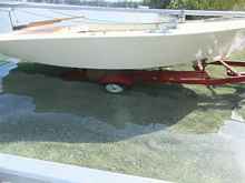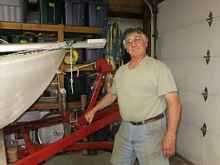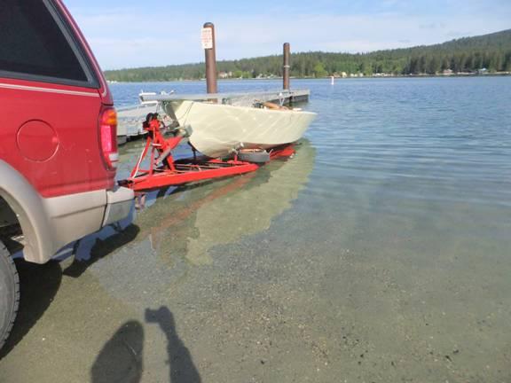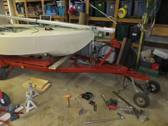 Tilt-tongue trailers are supposed to let the boat slide downhill into the water like so much cow pies, or gravel, or rose bush clippings sliding outa' a tipped up wheel barrow. But, with the geometry of the thing, you need a lot of weight at the rear end of the contraption to make it tilt. And, a plywood sailboat without a motor on the butt is decidedly not heavy in the rear. And, yet, the short tongue and narrow wheelbase of this rig just cries out for a way to get the boat into the water from her high perch on that little candy assed trailer frame. And, that brings us back to the tilt tongue setup.