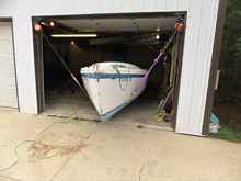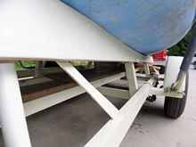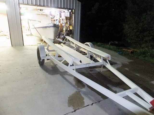 The only reasonable way to get a boat that will weigh around a ton to climb on and off a boat trailer is to have it float most of the way. Anything fixed to the trailer that is supposed to guide the boat along the center line has to stick up high enough to engage the keel, and low enough not to impale the hull when no longer floating. Enter my genius contraptions: