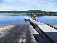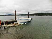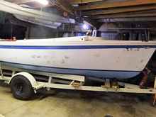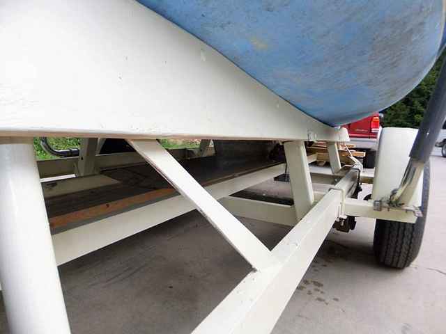 As I back this trailer with a 22 foot hull poised for departure into the lake, there’s a moment when the boat must decide if she will actually leave home - or not. Let’s just say that the ramp declines into the water at a constant 15 degrees or so. As the trailer continues to roll deeper into the water, the stern of the hull begins to float. That’s actually the mission. But, for a while the rest of the boat is still siding downhill with the trailer. Assuming you don’t want to end up on YouTube, you’ll stop the downward plunge before the car gets wet. This puts the weight of the bow on the forward supports, the stern behaving like a boat, and it’s now time to let your little girl leave the nest. In the case of Miss Kathleen, there is a pretty deep forefoot section that basically drops like a stone until the much broader midsection is floating properly. As this is happening, the bow is looking for a couple stair steps of some sort to bang down across first. Hence, the reason I was under that trailer all day.