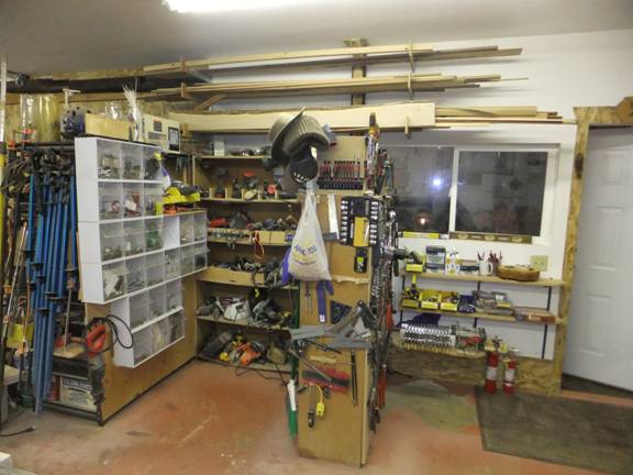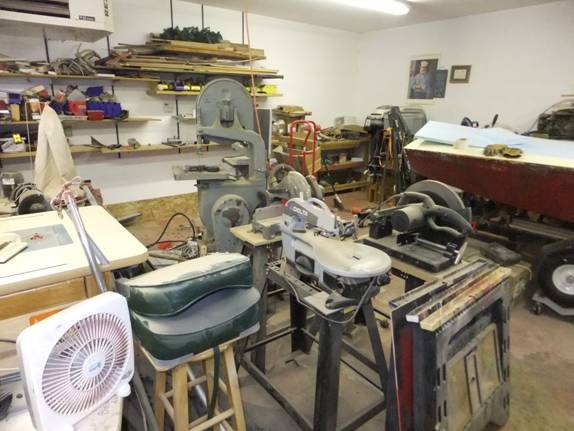 It’s inevitable that stuff will grow around the perimeter walls of any shop I occupy. Sort of like a bath tub ring. Pieces of plywood, chunks of logs for carving, outboard motors, even paint cans; and every now and again, this stuff has to be “brought under control.”